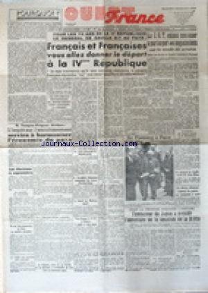 OUEST FRANCE [No 328] du 05/09/1945 - POURQUOI PAR DU LOU - DECLARATION DE DE GAULLE POUR LES 75 ANS DE LA 3EME REPUBLIQUE - SIR FLEMING A PARIS - TANGUY-PRIGENT ET L'IMPOT - LE LAOS RECONNAIT LA SOUVERAINETE FRANCAISE - DE GAULLE ET LEON BLUM - L'EMPEREUR DU JAPON A PRESIDE L'OUVERTURE DE LA SESSION DE LA DIETE - PDF Download or read online here in PDF or EPUB. Please click button to get OUEST FRANCE [No 328] du 05/09/1945 - POURQUOI PAR DU LOU - DECLARATION DE DE GAULLE POUR LES 75 ANS DE LA 3EME REPUBLIQUE - SIR FLEMING A PARIS - TANGUY-PRIGENT ET L'IMPOT - LE LAOS RECONNAIT LA SOUVERAINETE FRANCAISE - DE GAULLE ET LEON BLUM - L'EMPEREUR DU JAPON A PRESIDE L'OUVERTURE DE LA SESSION DE LA DIETE - book now. All books are in clear copy here, and all ...
